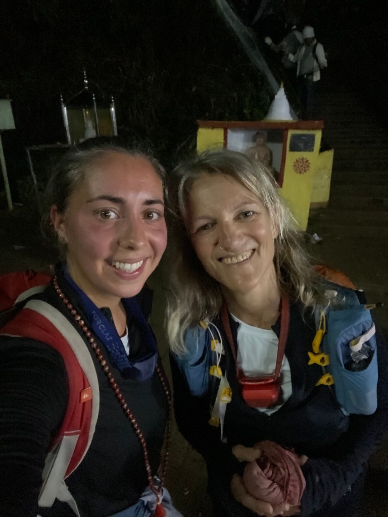 I wake before the three alarms I have set. It’s 1h40. I am dressed in full hiking gear when I climb into bed at 8pm. My fast-pack is loaded with every warm item of clothing I brought with me, including the pink shawl (the Diana I take on every pilgrimage), a kikoi, extra socks, an entire change of clothing and merino wool gloves. Geared up with head torch and rain jacket, I emerge from my room to the sight of a woman also kitted out for the climb. Her name is Cami, she’s from Paris and it’s her 32nd birthday. It’s hard to imagine I’m twenty years her senior. I feel 35 again, meeting young travellers on their first round of adventure. I get the sense I am being appraised with a measure of curiosity; they are not sure which bracket to place me in as I am the age of the mothers who are in the process of making home and being normal.