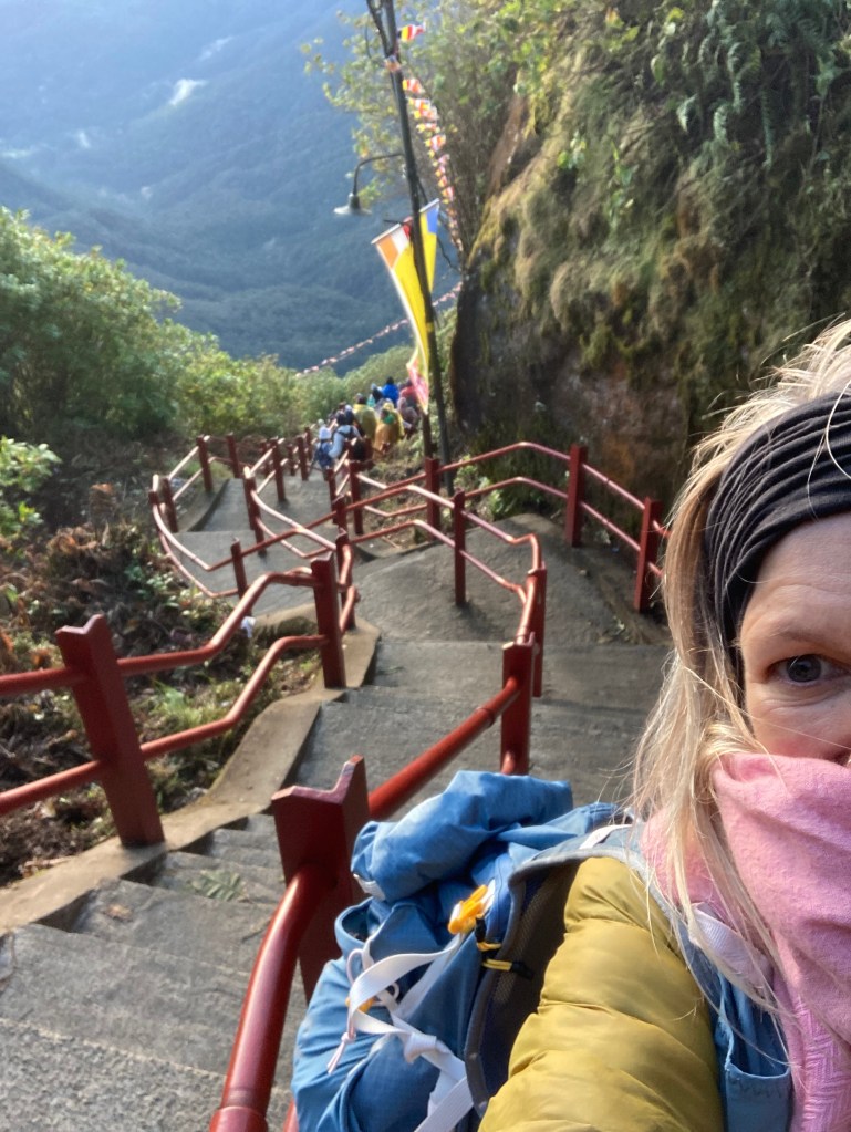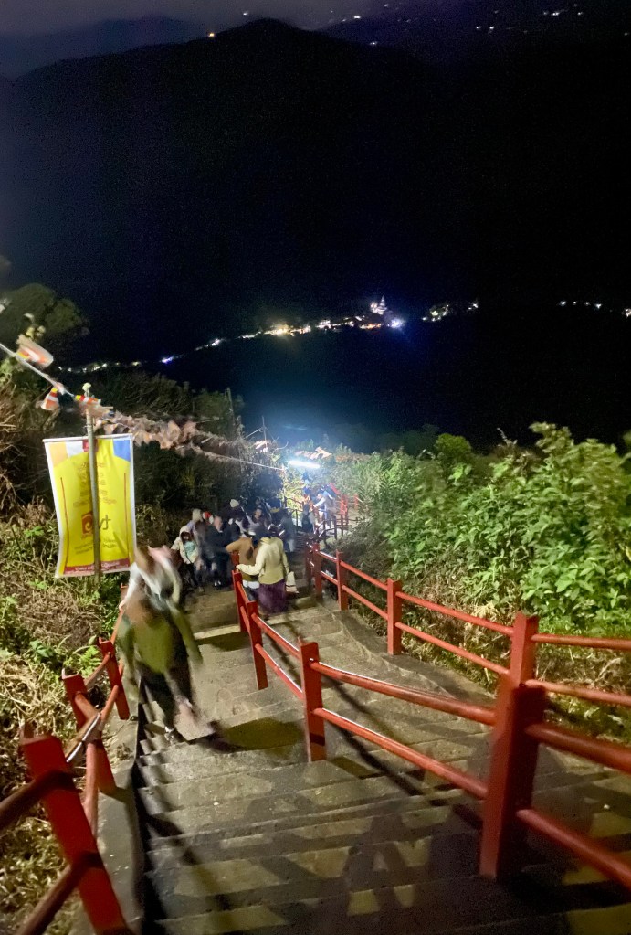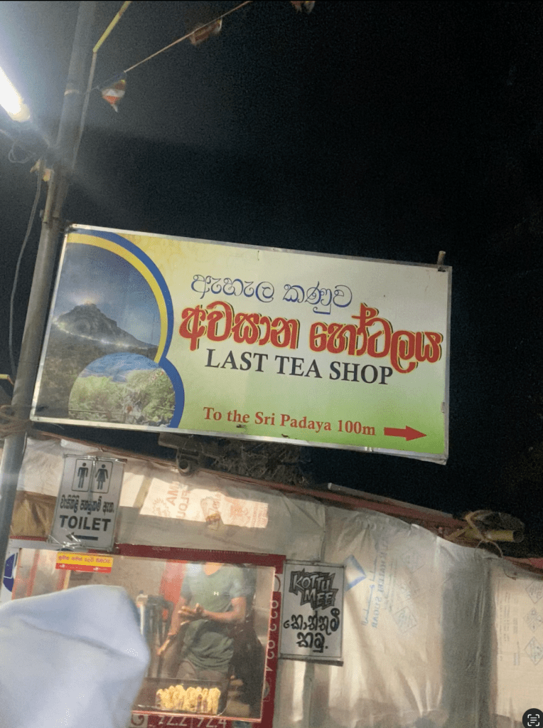 Most hikers in Cape Town know the Newlands Forest 400 steps. Add another 5,100, throw in a gazillion tons of concrete, hundreds of neon lights, tea stalls, sweet stalls, Buddha statues, snack bars and innumerable walkers from as old as ancient and as young as infant. It’s a lot to take in. I have the intention to do two nights in a row up SriPada. I am delusional.