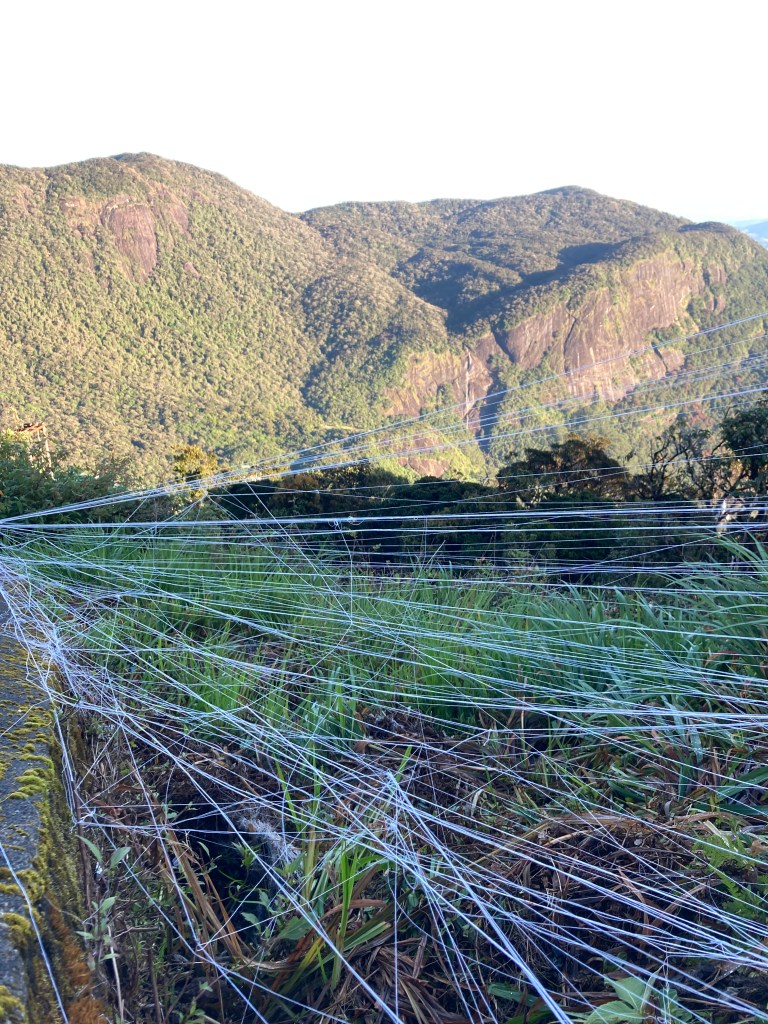 I navigate new pathways and pave new neurological networks. Like the silk of the spider’s web or moth’s cocoon, the white pilgrims threads create initiation networks, a semi-permanent anchor on the railings. I lay paths that others may follow, not because I know my way but so others may know it’s okay to not know. There are no solid lines on this map. Only hyphenated. A dot-to-dot puzzle. This is my Sadhana.