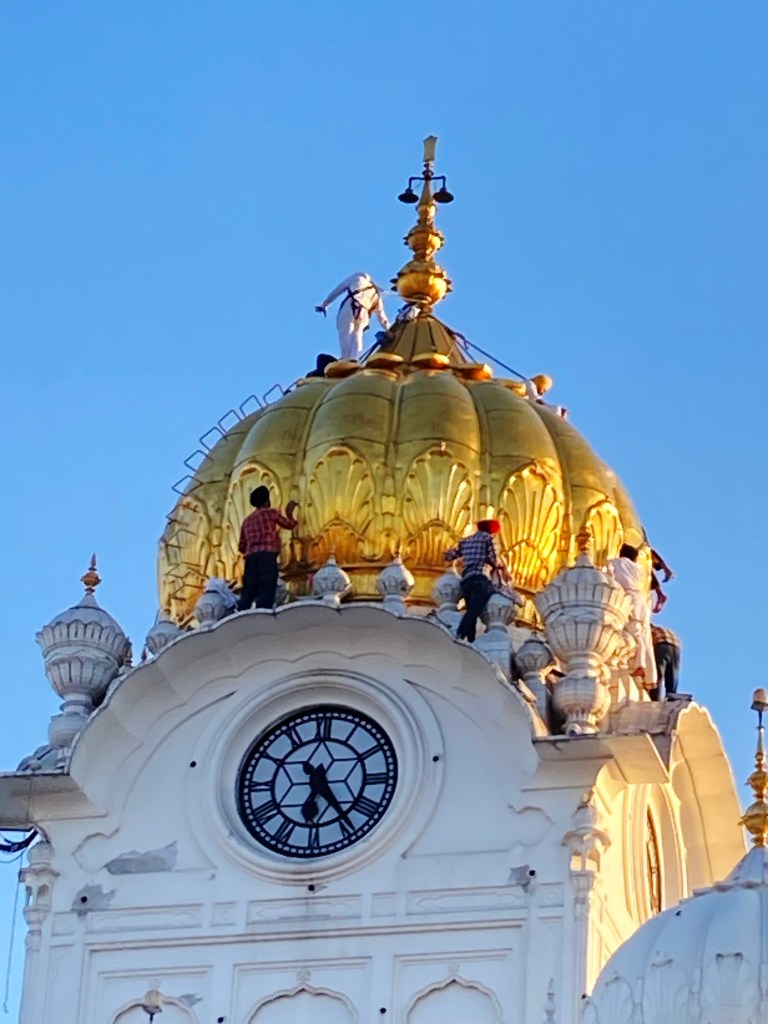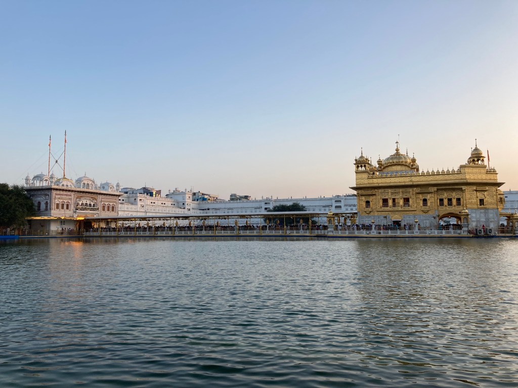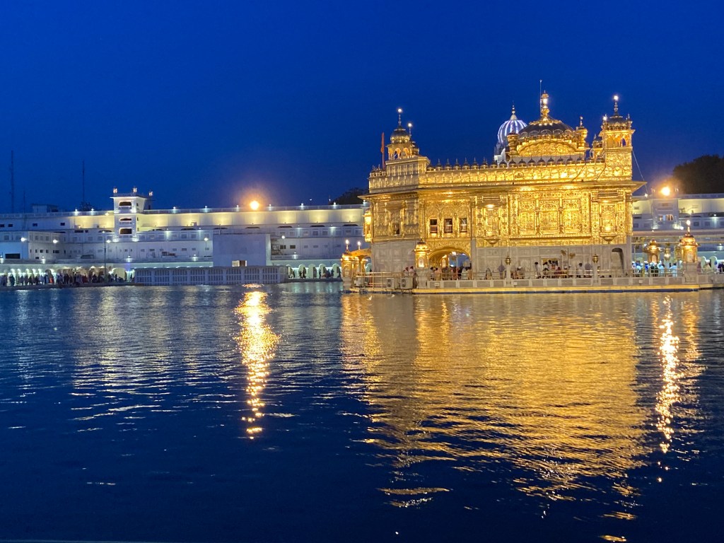 Gu means darkness or ignorance; Ru means elimination of that darkness; Guru means light coming from darkness, and Gurudwara is the doorstep of the Guru. Amrit means ambrosia, a substance so aptly reflected in the name given to the body of water that, bar a 65m causeway, maroons the Seikh shrine crowned with a 500kg gold-coated dome: Amrit Sarovar. Simply looking at it floods me with a somatic response that hitches me to everything beyond the soma.